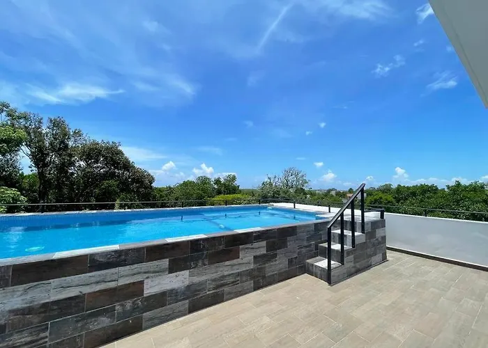 Situada a 3 km de distancia de la playa de Bahía Petempich, la Leyton'S House - Full House Villa ofrece un aparcamiento privado gratuito, una zona de picnic y un jardín. Ofreciendo vistas a la piscina, esta villa viene con un balcón, un sofá y televisión por satélite.